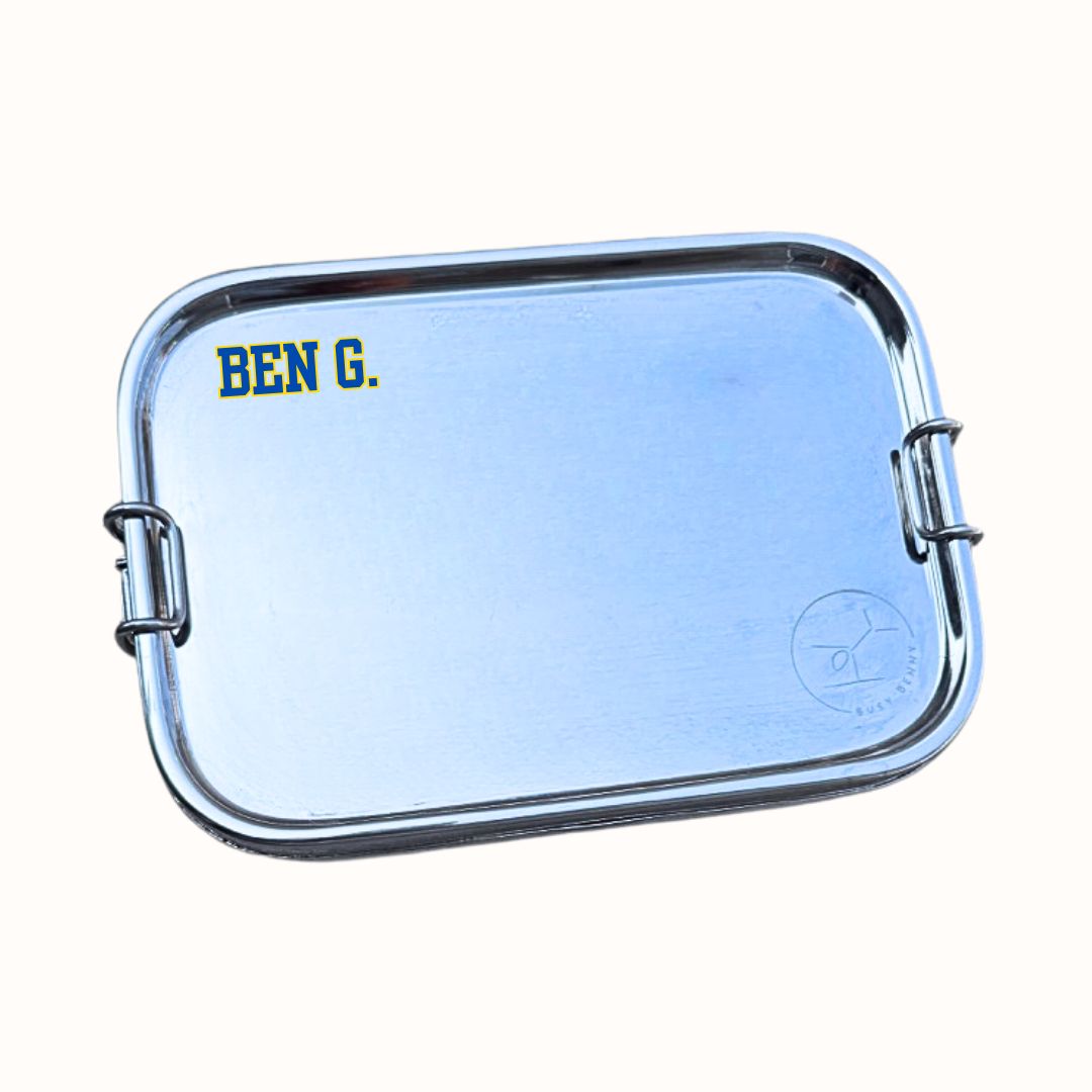 The Small Rectangle snack container measures 10 cm by 6 cm by 4 cm. Can hold about 150 mL of food.