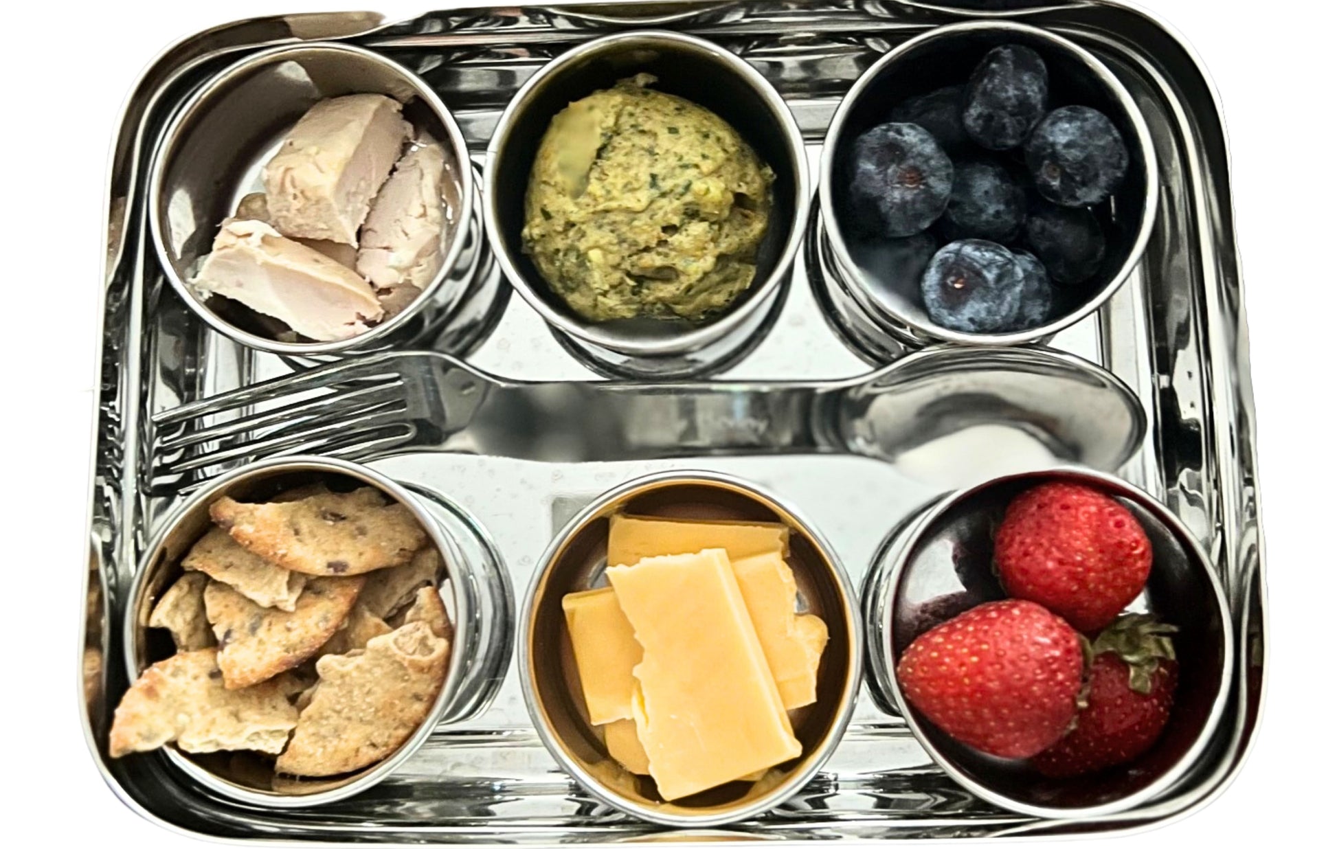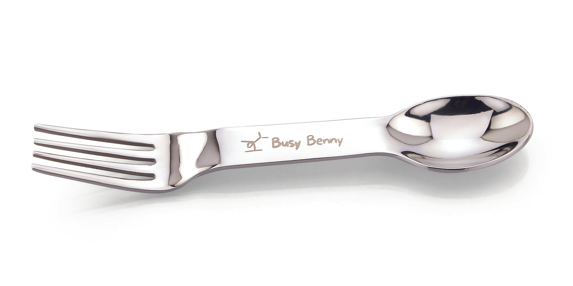 This spork fits neatly in our snack box providing both a fork and spoon option for your child.